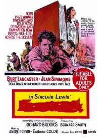 1. Elmer Gantry by Sinclair Lewis (1927), film in 1960. A confidence man and a female evangelist sell religion to small-town America. The opening paragraph tells us that the story takes place in the Midwest in the 1920s. It suggests a judgmental narrator and gives us a glimpse into the personality of the protagonist, an outgoing man of questionable character. The movie starred Burt Lancaster and won three Academy Awards.