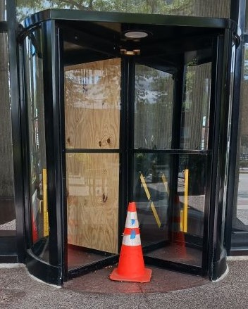 In August, a sudden storm broke one of the revolving front doors of my condominium building. Due to a shortage of replacement parts, we’re still waiting for it to be fixed.