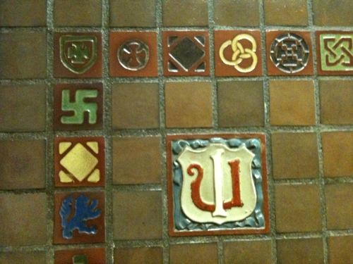 My junior high school had a scandalous “secret” that older students would melodramatically point out to incoming seventh-graders. The hallway floors in one of the buildings was edged with decorative glazed tiles in bright colors. On the first floor near the office, amid tiles depicting anchors, lions, birds, shields, and other motifs, there was a swastika!