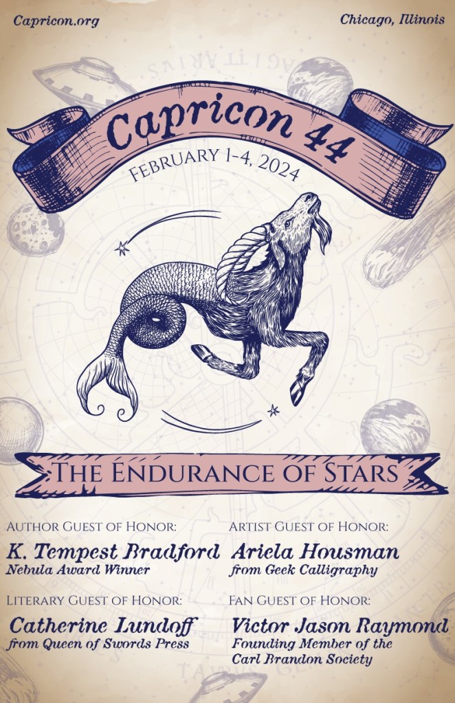 This weekend, I’ll be at Capricon, a four-day science fiction convention held annually in the Chicago area since 1981. This is a fan-run convention created entirely by volunteers. Attendance might reach 1000 people — the right size for friendship and fun.