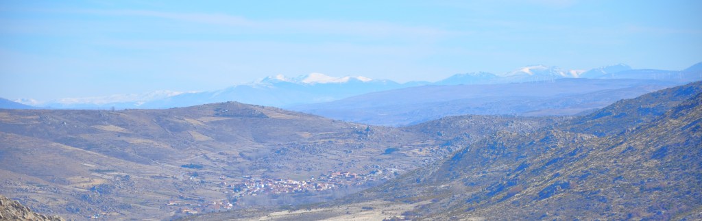 [Photo: Riofrío de Ávila, with the Guadarrama Mountains in the background. It had a population of 1100 in 1916, and 195 in 2023. Photo by Xemenendura.]