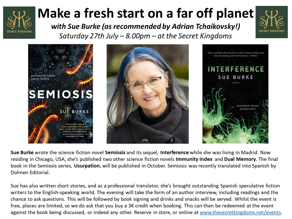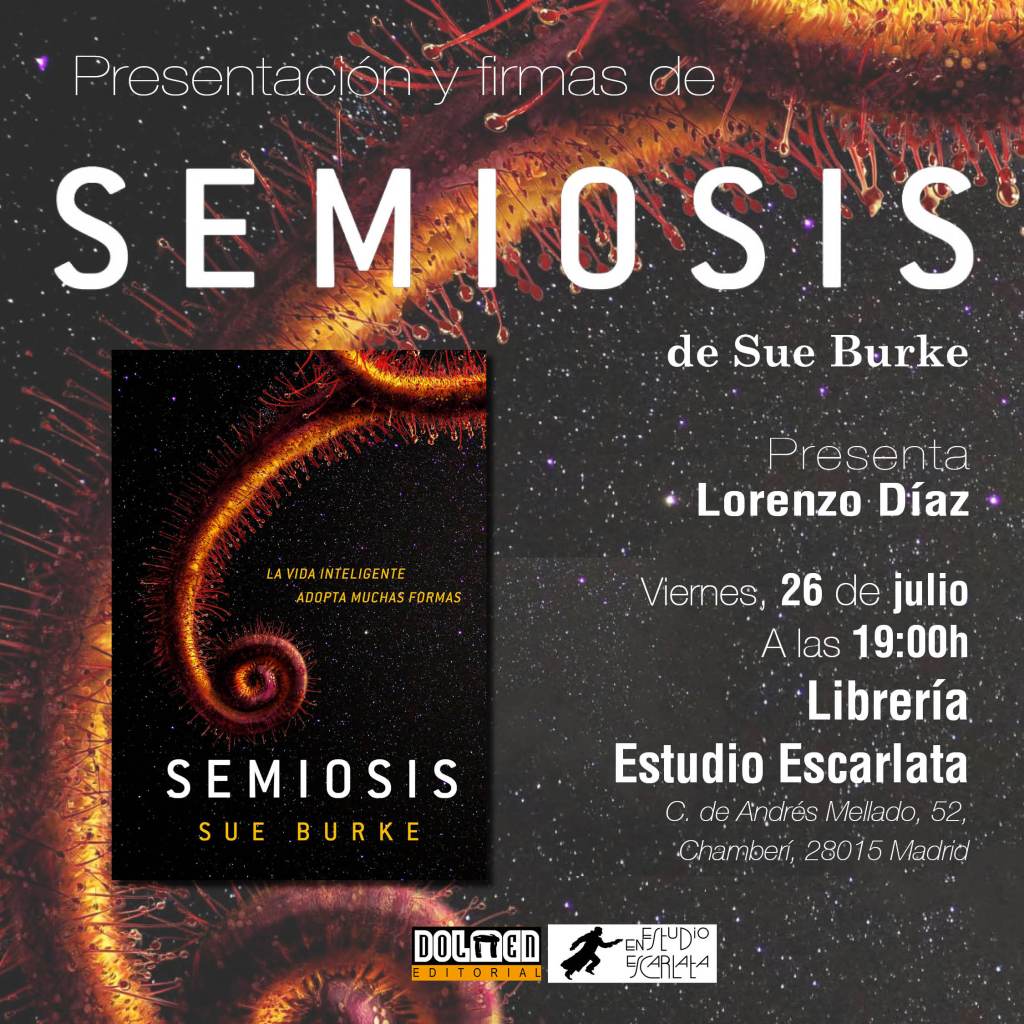 If you speak Spanish, come to Estudio Escarlata at 7 p.m. Friday, July 26, at calle Andrés Mellado 52. As you may know, Semiosis is now available in Spanish — with a wonderful translation by Rafael Marín.